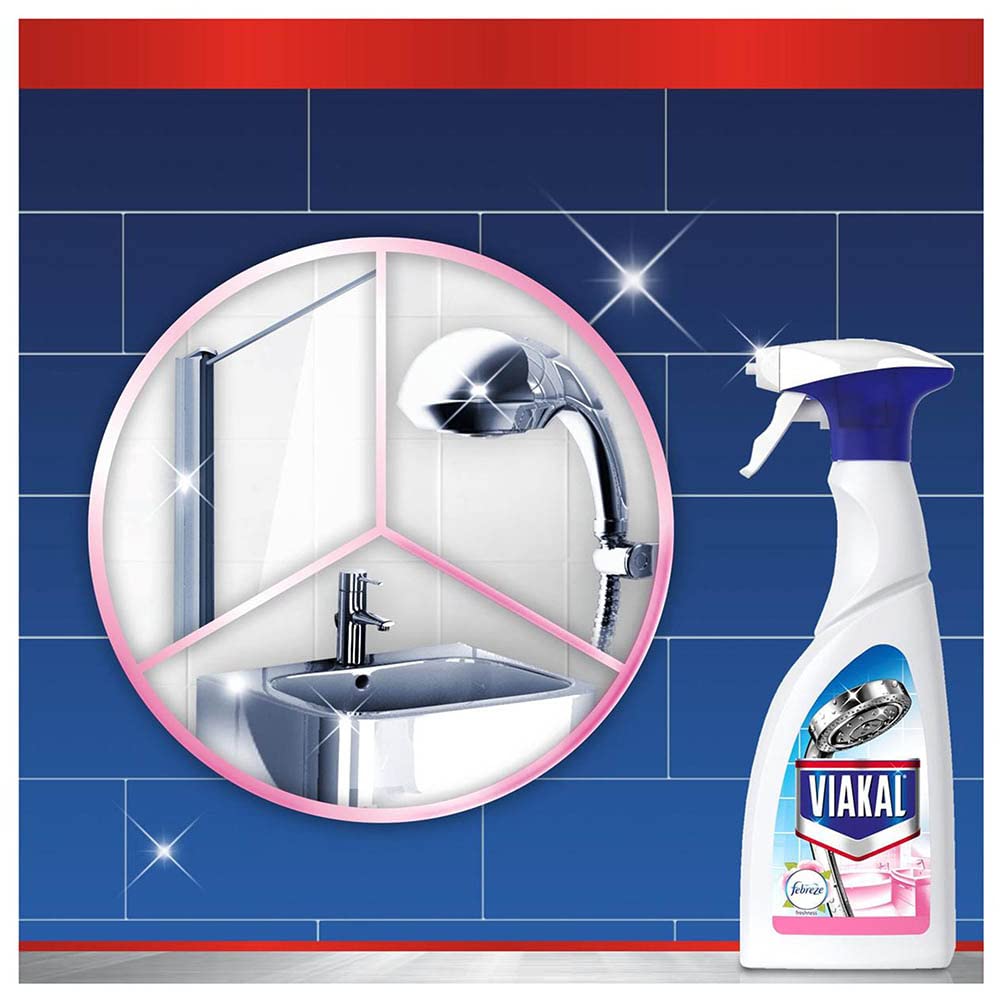 Viakal Fresh spray removes lime scale, soap scum and watermarks and has a nice fresh scent with Febreze. Used regularly, Viakal helps prevent lime scale return. Viakal Fresh has 100 percent Viakal Power as it is equally effective on lime scale removal as Viakal Classic.